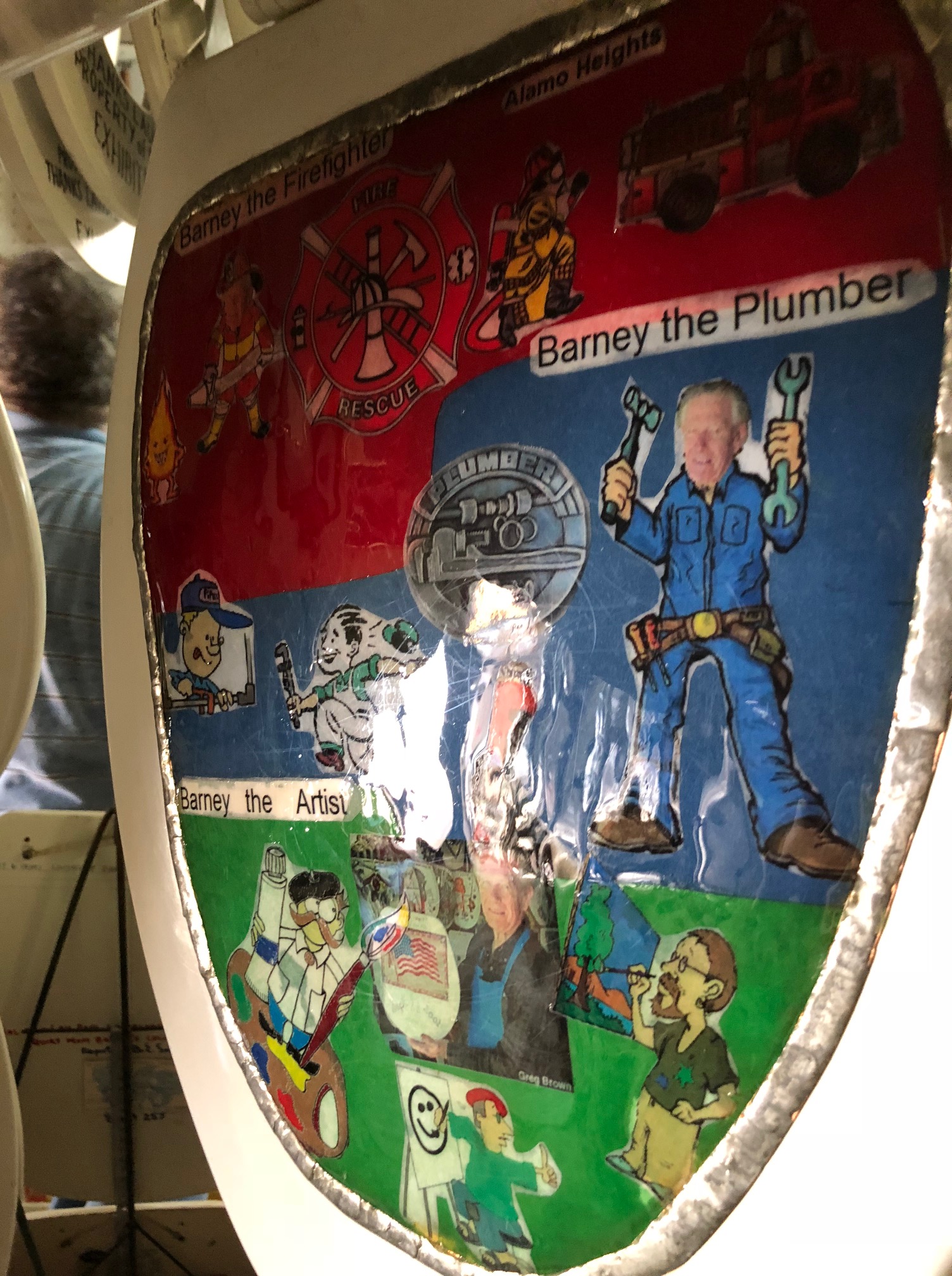 This museum is both personal and public. Private but on display. Local but national, even international. Personal reflections on bigger stories. It really reminded me of one of the first books I read for graduate school, Private History in Public, actually written by my professor and adviser, Dr. Tammy Gordon. In it she writes about historical exhibits that “complicate the public/private dichotomy, exhibits that promote individualized perspectives to strangers and cement ties between relatives, friends, colleagues, and community members.” Barney Smith’s toilet seat museum is a prime example of this. Touring it with my husband, my mom, and my grandparents, we were all pointing out various seats to one another, discussing our own remembrances or knowledge about the various events, topics, and places that were depicted on the seats. It was clear that the community of San Antonio was involved with Mr. Smith’s work, with local commendations, awards, and donations to his collection on display with his seats. And being shown around by Barney himself allowed us to see and hear his perspective on his art, on the seats he thought would most interest us, and on the historical events depicted. As Gordon discusses in Private History in Public, these kinds of non-traditional, small museums enable this dialogue. Furthermore, the interest in this museum speaks to people’s interest in individual stories and individualized pasts, a point made in Roy Rosenzweig and David Thelen’s foundational work, The Presence of the Past: Popular Uses of History in American Life. People are interested in history, in the past, in others’ stories, but more in ways in which they can connect to their own stories and pasts. This may be why historic sites and museums continue to struggle with visitor numbers. People want to see a past that they feel connected to.